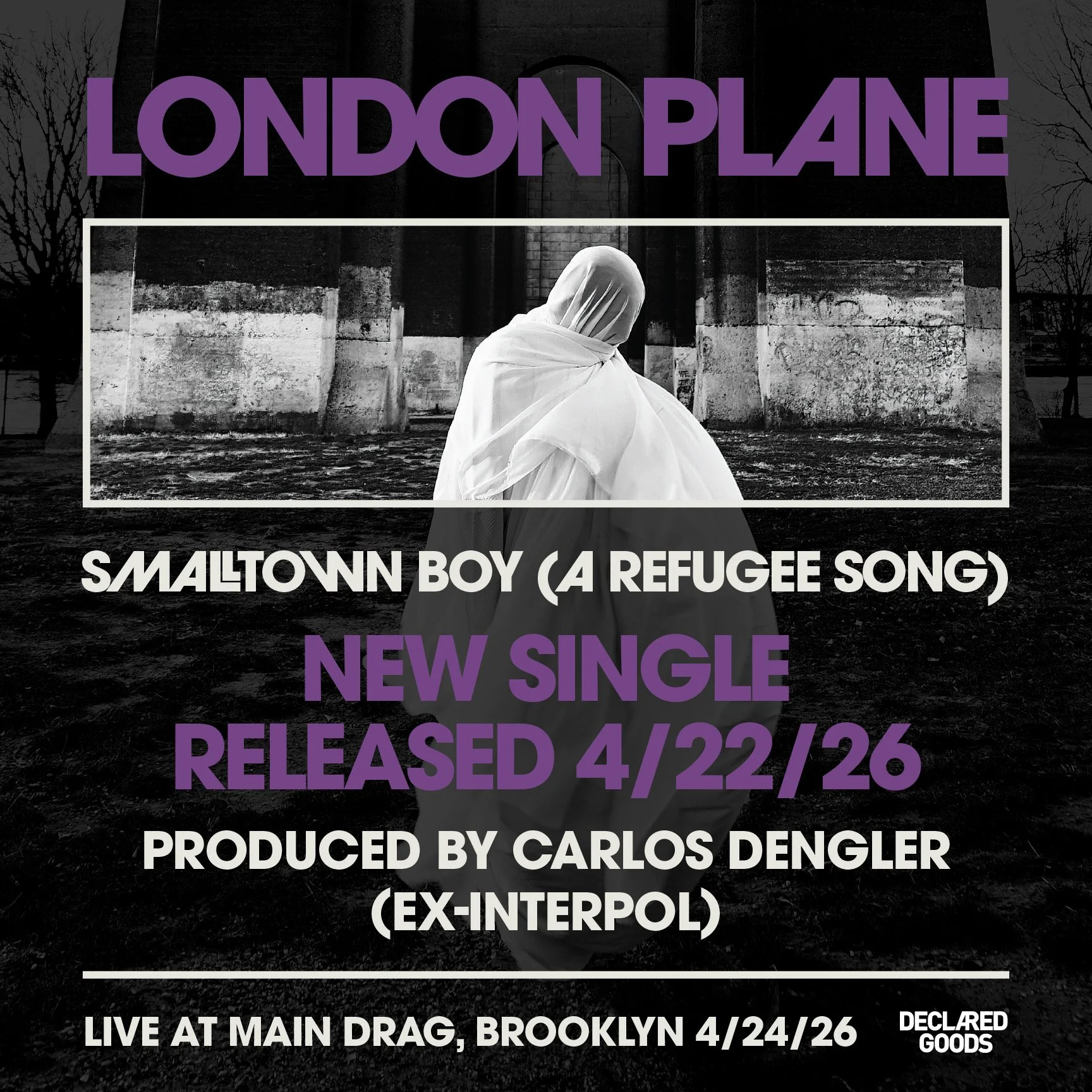 We are pleased to announce that the sparklingly dark London Plane single “Smalltown Boy (A Refugee Song)” will be released on 4/22/26 via declared goods Records.